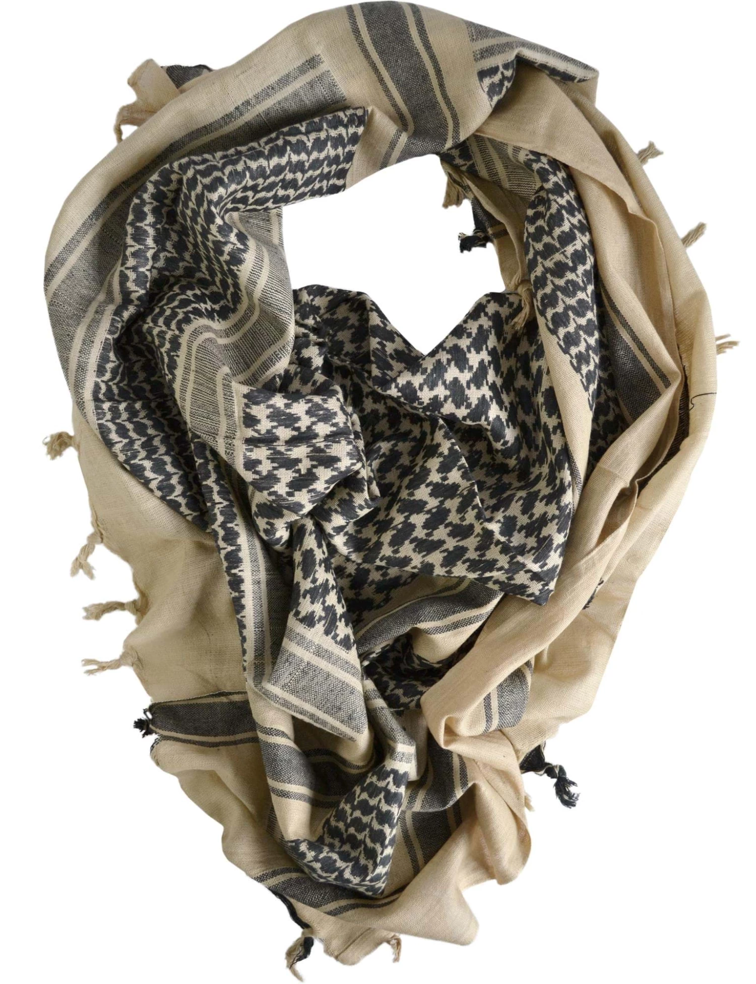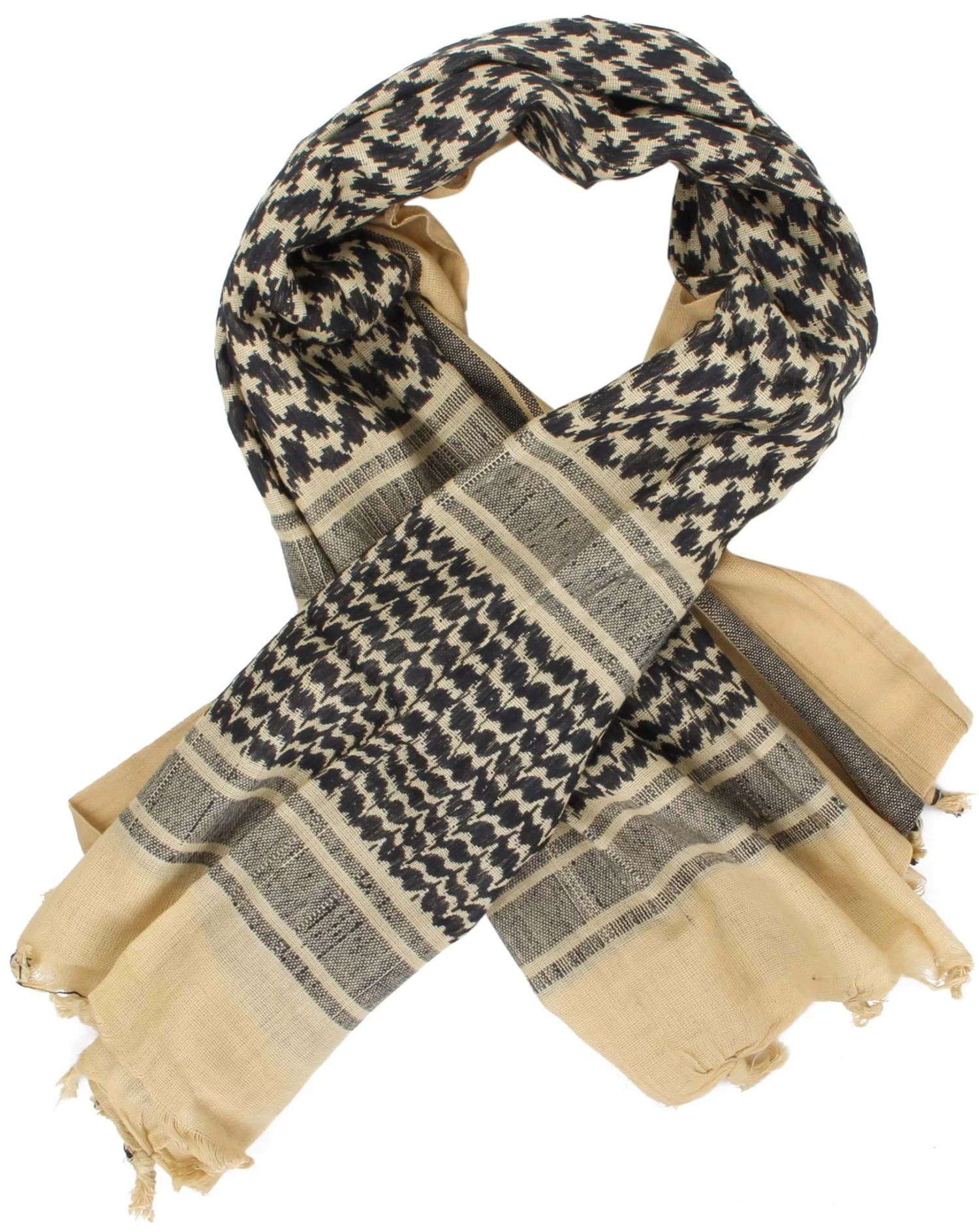 Das Shemagh-Tuch dient zur Gesichtstarnung und schützt gleichzeitig vor Staub, Sand, Sonnenstrahlen und Kälte. Eine Kufiya, wie das Shemagh-Tuch mit den typischen Fransen ebenfalls genannt wird, ist einsetzbar als Halstuch, Schal, Kopftuch, Decke oder zur Abdeckung von Ausrüstungsgegenständen. Dabei kann das bekannte Streifen- und Würfelmuster kontrastreich zum Outfit getragen werden. Dank der Größe von 110 x 110 cm sind viele verschiedene Tragevarianten möglich.