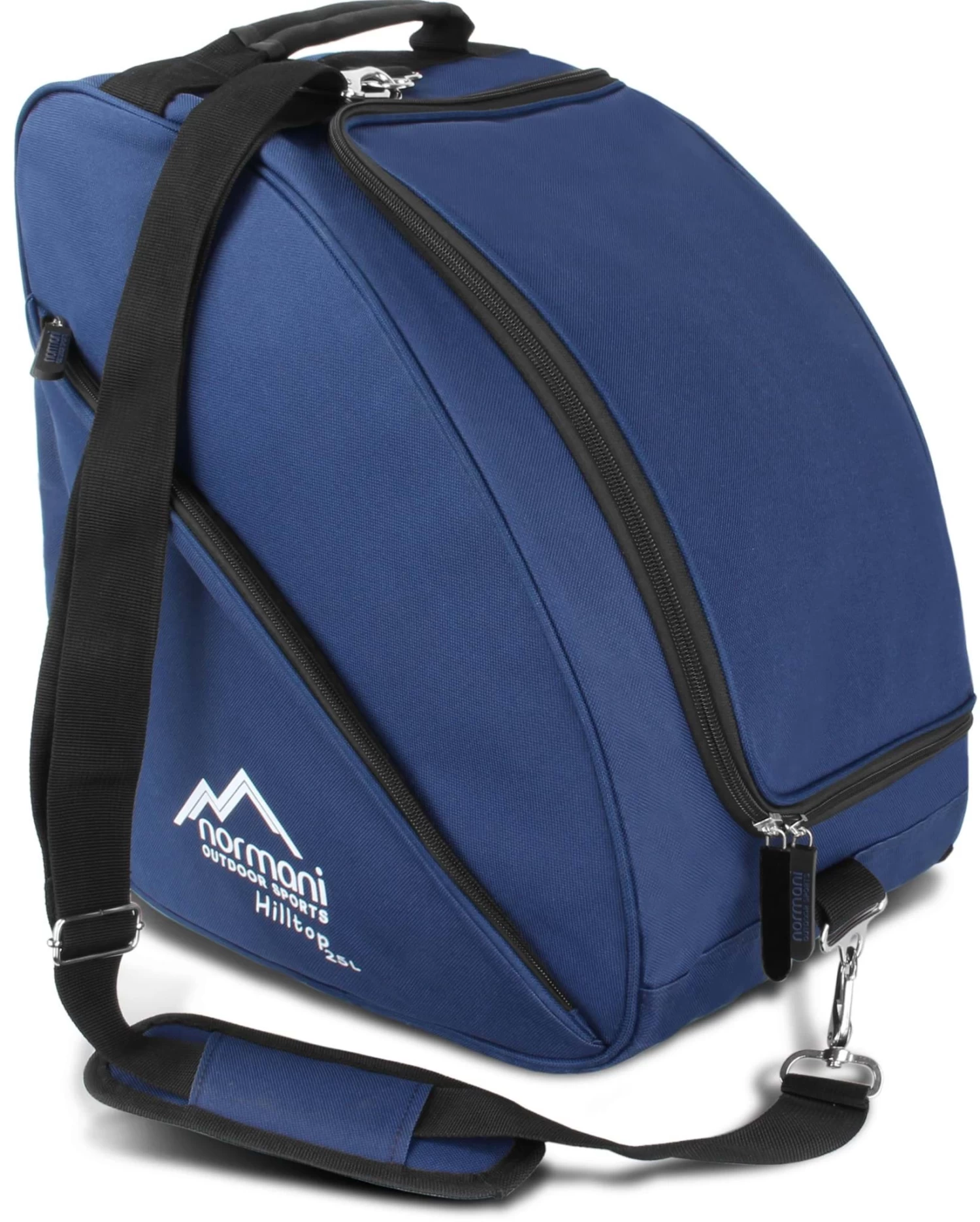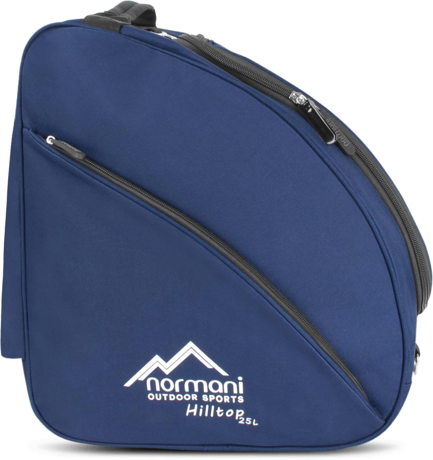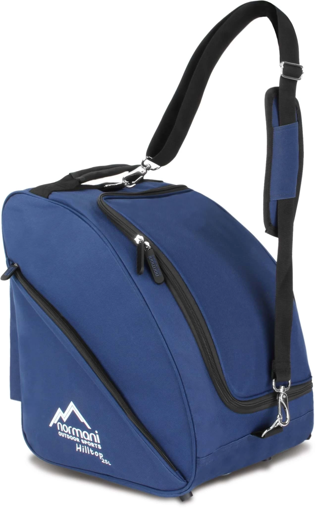 Die Wintersport Skitasche „Hilltop Depo“ verfügt über ein geräumiges Hauptfach, sodass die nassen Skischuhe nicht in Kontakt mit anderen Ausrüstungsgegenständen, wie Hose, Handschuhe, Unterwäsche oder Helm, kommen. Die Skitasche verfügt über eine flexible Bodenplatte. Dieses Feature erzeugt die nötige Stabilität von schweren, sperrigen Skischuhen. Bei Nichtgebrauch lässt sich die Tasche auf ein kleines, platzsparendes Maß zusammenfalten. An beiden Seiten und auf der Vorderseite befinden sich separate, wasserdichte Fächer, die das Verstauen von wichtigen Gegenständen oder Bekleidungsstücken wie Handschuhe oder Skibrille ermöglichen. Die großzügigen Ablaufösen leiten Feuchtigkeit nach Außen ab, sodass im Inneren ein trockenes Milieu geschaffen wird. Die Tasche verfügt über abnehmbare, längenverstellbare, gepolsterte Schultergurte. Unter Volllast kann die Tasche auch mittels stabilem Tragegriff getragen werden. Das wasserdichte Innenmaterial lässt keine Feuchtigkeit nach Innen und sorgt für einen trockenen Innenraum. Die Standfüße sorgen für einen sicheren Halt.