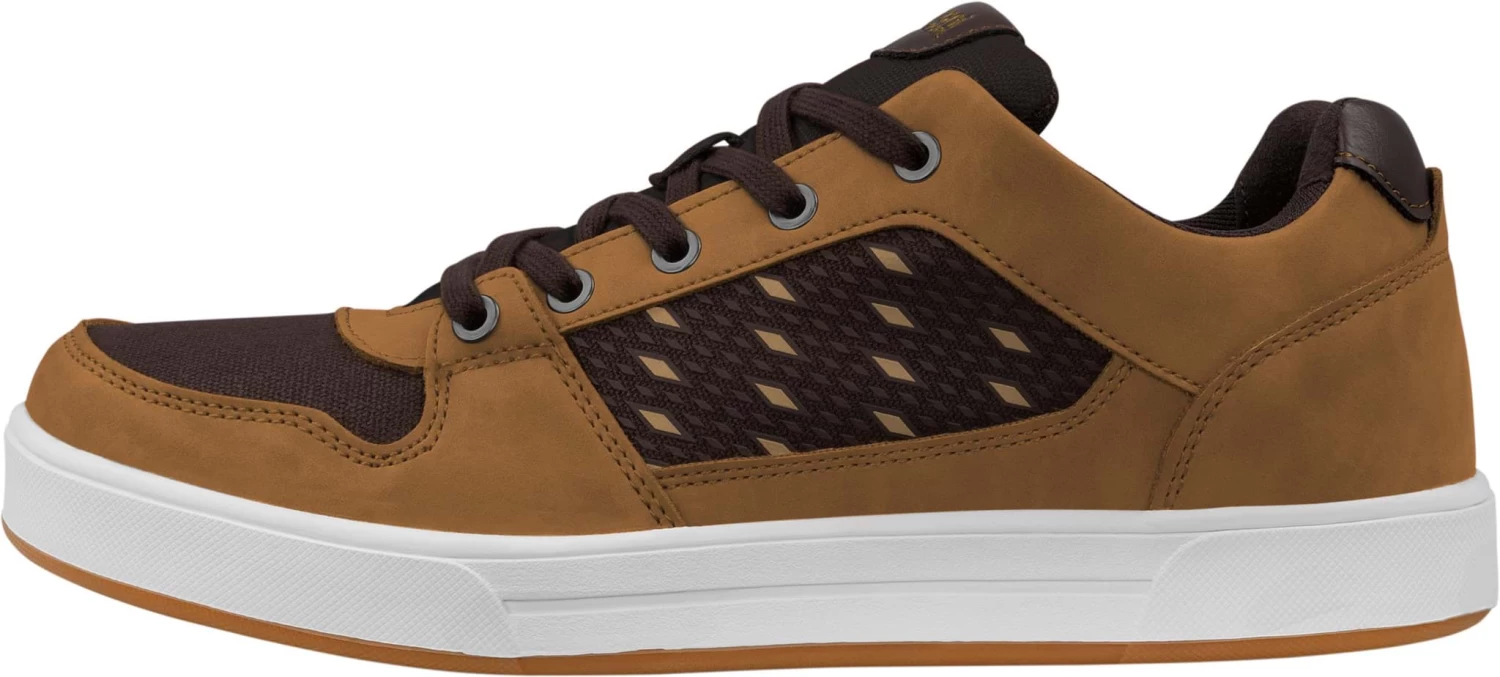 Unsere veganen, progressiven Low-Top Outdoor-Sneakers mit Recyclinganteil wurden mit Fokus auf eine vielseitige Verwendbarkeit für Outdoor, Reise und Freizeit entwickelt. Eine leichte Tagestour auf unebenen, steinigen Untergründen oder noch härteren asphaltierten Straßen und Pflastersteinen. Die dicke, herausnehmbare, kontinuierliche gepolsterte Sohle sorgt in Verbindung mit der gummierten Sohle und einem ergonomischen Abrollverhalten stoßdämpfend und stabilisierend. Dabei besteht die Sohle zu 30 % aus recyceltem Material. Atmungsaktiv leicht und luftig am Fuß bietet der Schuh nicht nur optimalen Sitz, sondern auch anhaltenden Laufkomfort. Eine verstärkte Ferse und Fußspitze sorgen auf leichten unebenen Pfaden für den nötigen Halt für Fuß und Knöchel. Das Futtermaterial ist ebenfalls aus veganem und atmungsaktivem Material. Durch die flache Silhouette wird am Knöchel die größtmögliche Bewegungsfreiheit erreicht und das Gewicht des Sneakers reduziert. Der Hybridschuh sorgt für sommerliche Leichtigkeit und lässt sich tagsüber mit der Shorts und abends mit Jeans oder Chinohose kombinieren. Die kontrastierenden Rautenakzente übermitteln einen puristischen Look für Urlaub, Wanderungen oder im Büro.