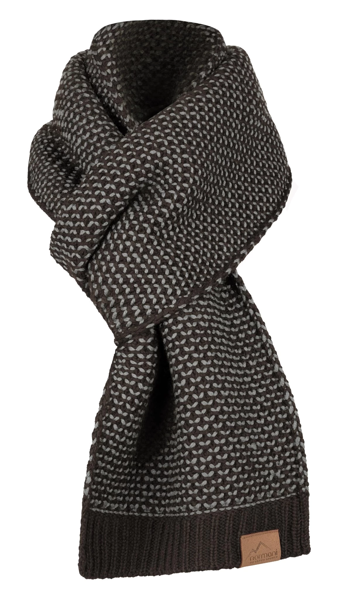 Hergestellt aus einer hochwertigen Mischung aus 50 % Merinowolle und 50 % Acryl, bietet der Strickschal „Edet“ nicht nur optimale Wärme, sondern auch Langlebigkeit und Tragekomfort. Die einzigartigen Vorteile der Merinowolle, wie ihre natürliche Atmungsaktivität und Feuchtigkeitsregulierung, sorgen dafür, dass Sie stets warm, aber nie überhitzt sind. Selbst bei mehrtägigen Wandertouren bleibt der Schal dank des Merinowollanteils geruchsneutral. Die natürlichen antibakteriellen Eigenschaften der Merinowolle ermöglichen ein frisches Tragegefühl, auch wenn die Tour noch so anspruchsvoll ist. Der Schal präsentiert sich in einem dezenten zweifarbigen Strickmuster, das modern und elegant wirkt. Diese gelungene Kombination macht den Schal zu einem vielseitigen Accessoire. Abgerundet wird das Design durch das vegane Lederlabel mit unserem Logo.
