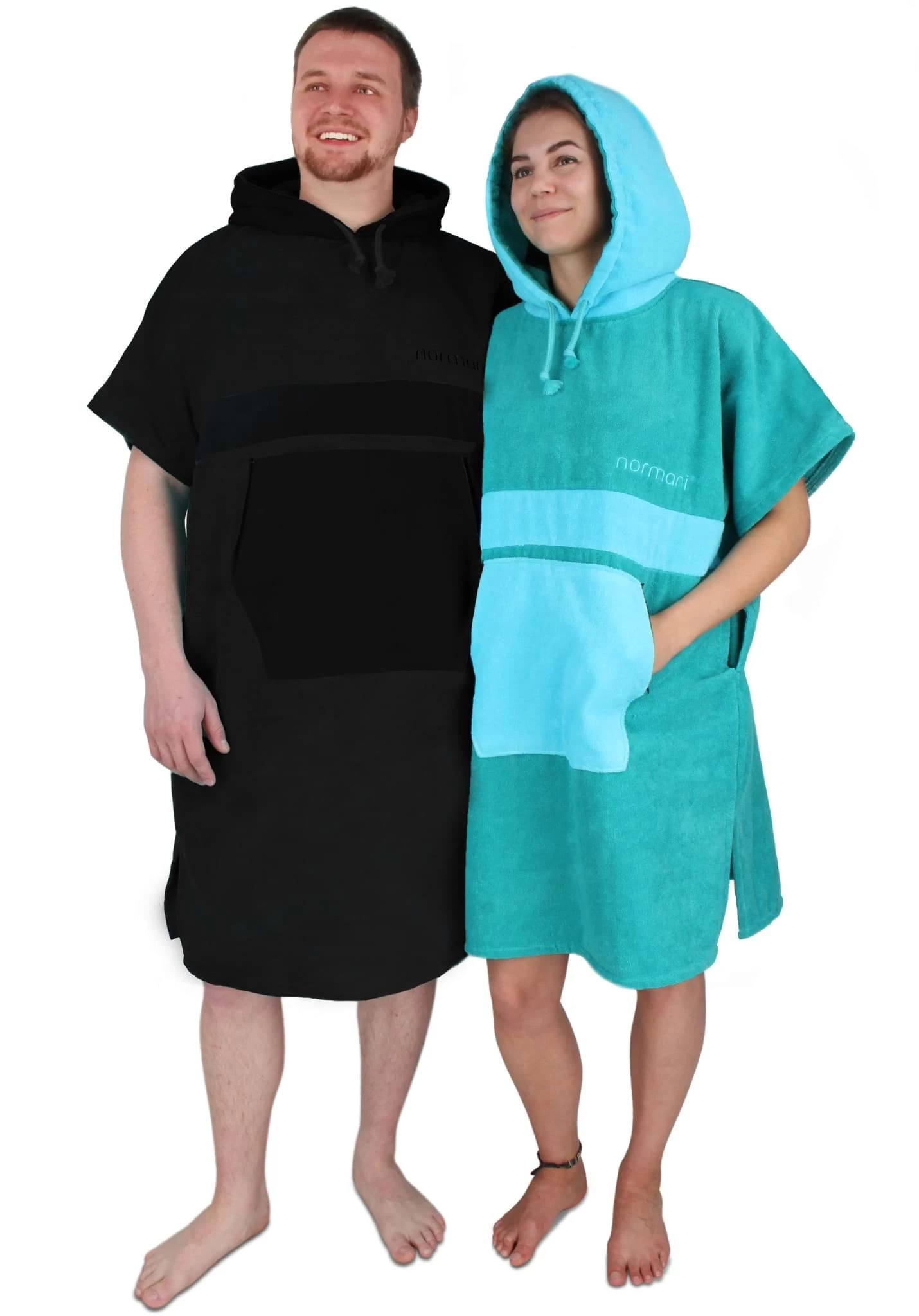Der Surfer-Poncho besteht aus 100 % Baumwolle, um die Feuchtigkeit auf deiner Haut bestmöglich aufzusagen und dich warm und trocken zu halten. Die große Bauchtasche ist mit 2 Reißverschlüssen rechts und links verschließbar, sodass auch wertvolle Gegenstände hier sicher verstaut sind. Zusätzlich verfügt der Poncho über eine Kapuze und zwei Seitenschlitze zum Umziehen. Perfekt für Schwimmbad, Strand oder den See.