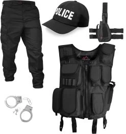 SWAT / SECURITY / POLICE Kostüm Bestehend Aus Weste, Patch, Hose, Rechtem Beinholster, Cap Und Handschellen POLICE