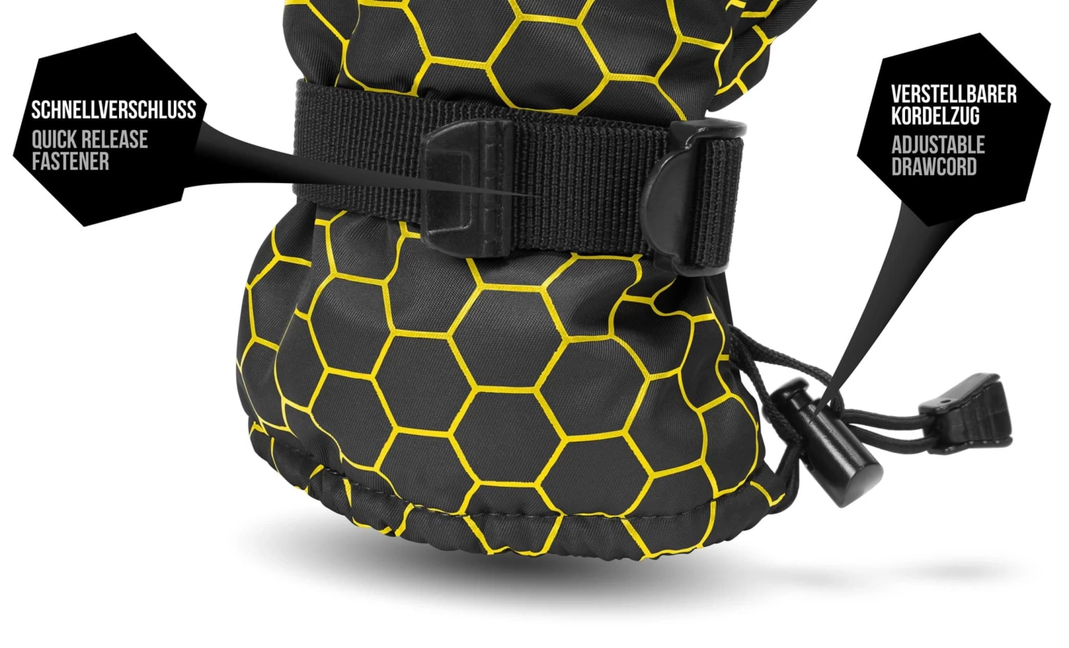 Das reißfeste Obermaterial aus Polyamid ist wasserabweisend und winddicht. Das aufgebauschte Innenmaterial aus weichem Fleece sorgt selbst an den kältesten Wintertagen für angenehmen Tragekomfort. Dank einer hochwertigen Mikrofaser-Füllung eignen sich die Handschuhe sogar für eisige Temperaturen bis -35 °C. Damit die Handschuhe auch bei bewegungsintensiven Aktivitäten gut sitzen, gibt es einen flexiblen Einsatz am Handgelenk. Der Abschlussbund mit elastischem Gummizug und Cordlock-System verhindert, dass Schnee und kalte Luft an Ihre Hände gelangen. Ein verstellbarer Schnellverschluss am Handrücken ermöglicht passgenauen Sitz. Um den Verlust der Handschuhe nach einem Sturz auf der Skipiste zu vermeiden, kann die Schlaufe im Inneren ums Handgelenk gelegt werden.