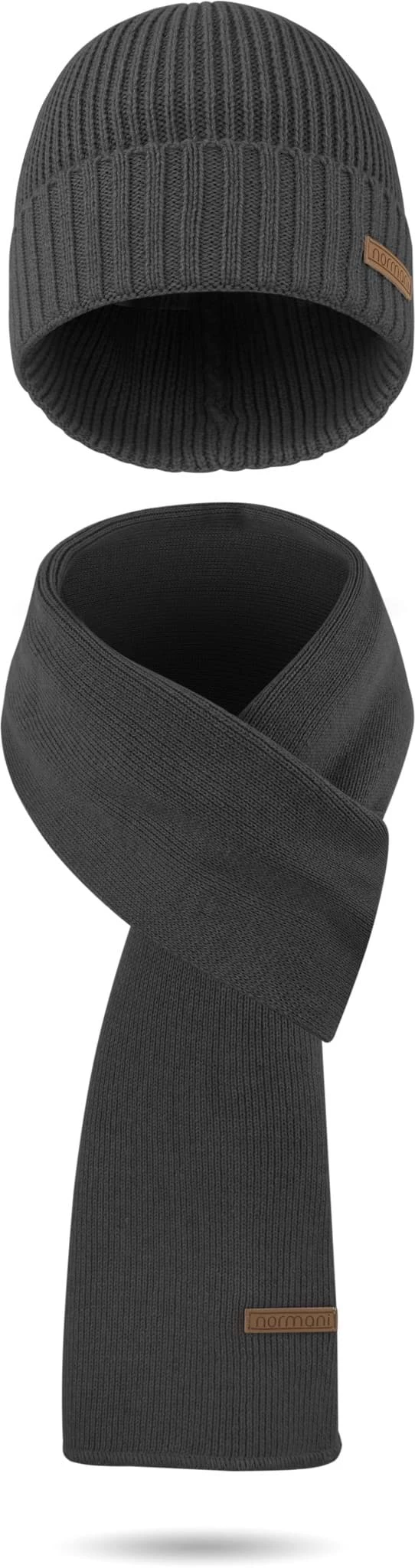 Winterset Aus Merinowolle Schal Und Mütze Glatt „Yuma“ Anthrazit